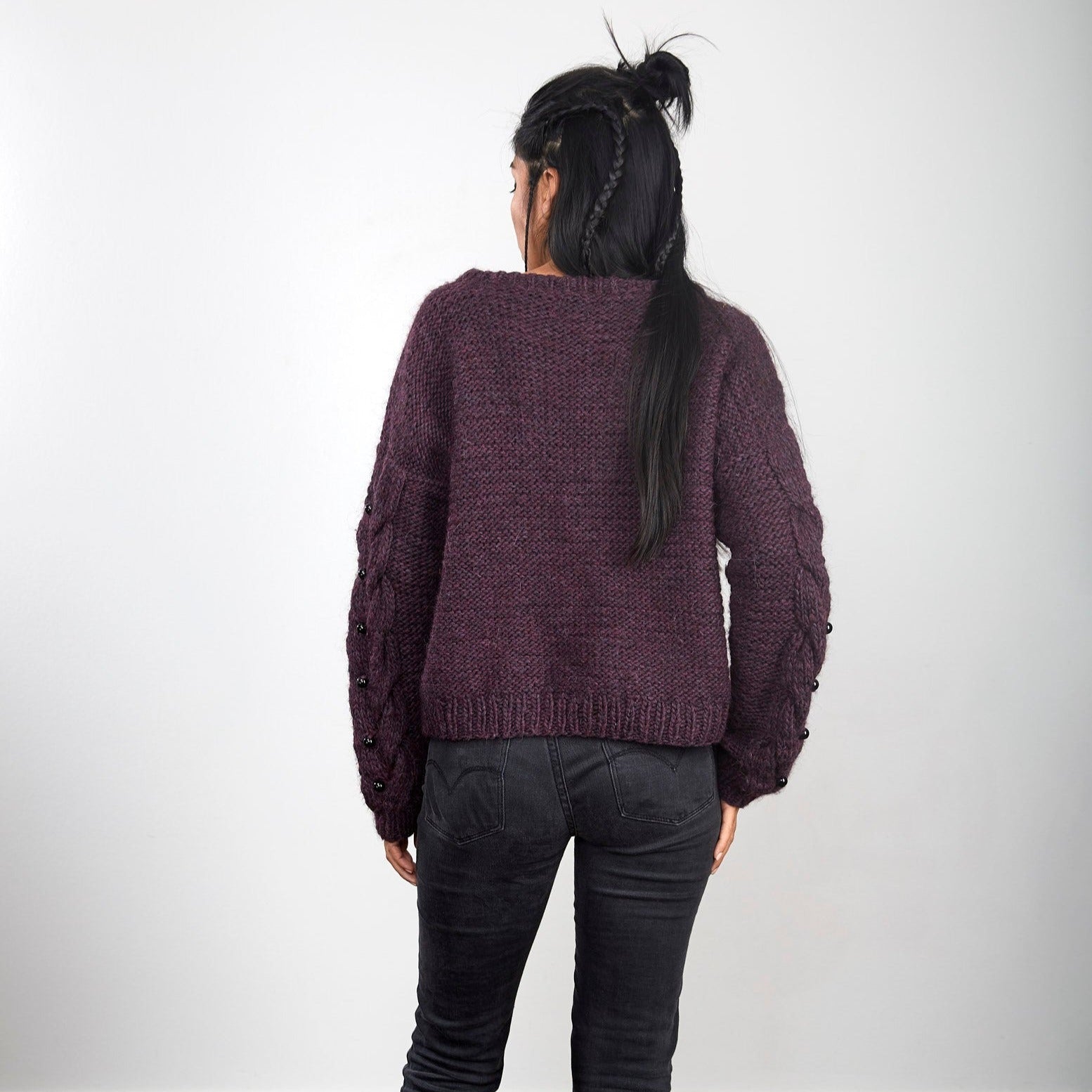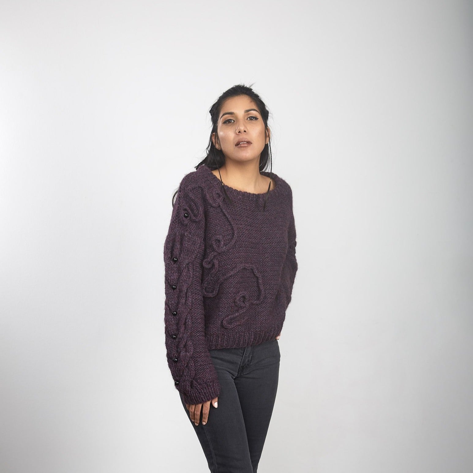 • Pullover with unique hand embroidery and glass beads on the sleeves